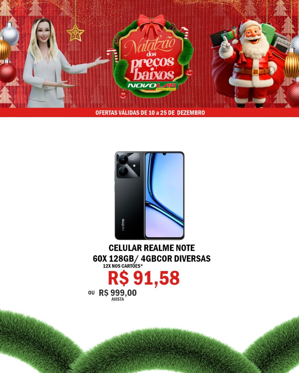 Smartphone Realme Note 60x com 128GB de armazenamento e 4GB de RAM. Destaca-se pelo visual moderno, construção leve e processamento ágil para o cotidiano.