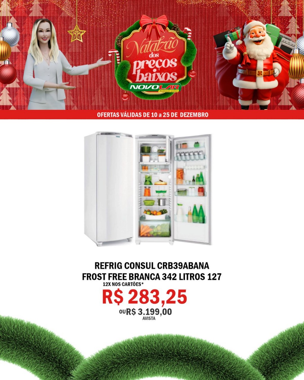 Refrigerador Consul de uma porta com 342 litros, referência em aproveitamento de espaço. Modelo Frost Free 127V com congelador espaçoso e gavetão de legumes.