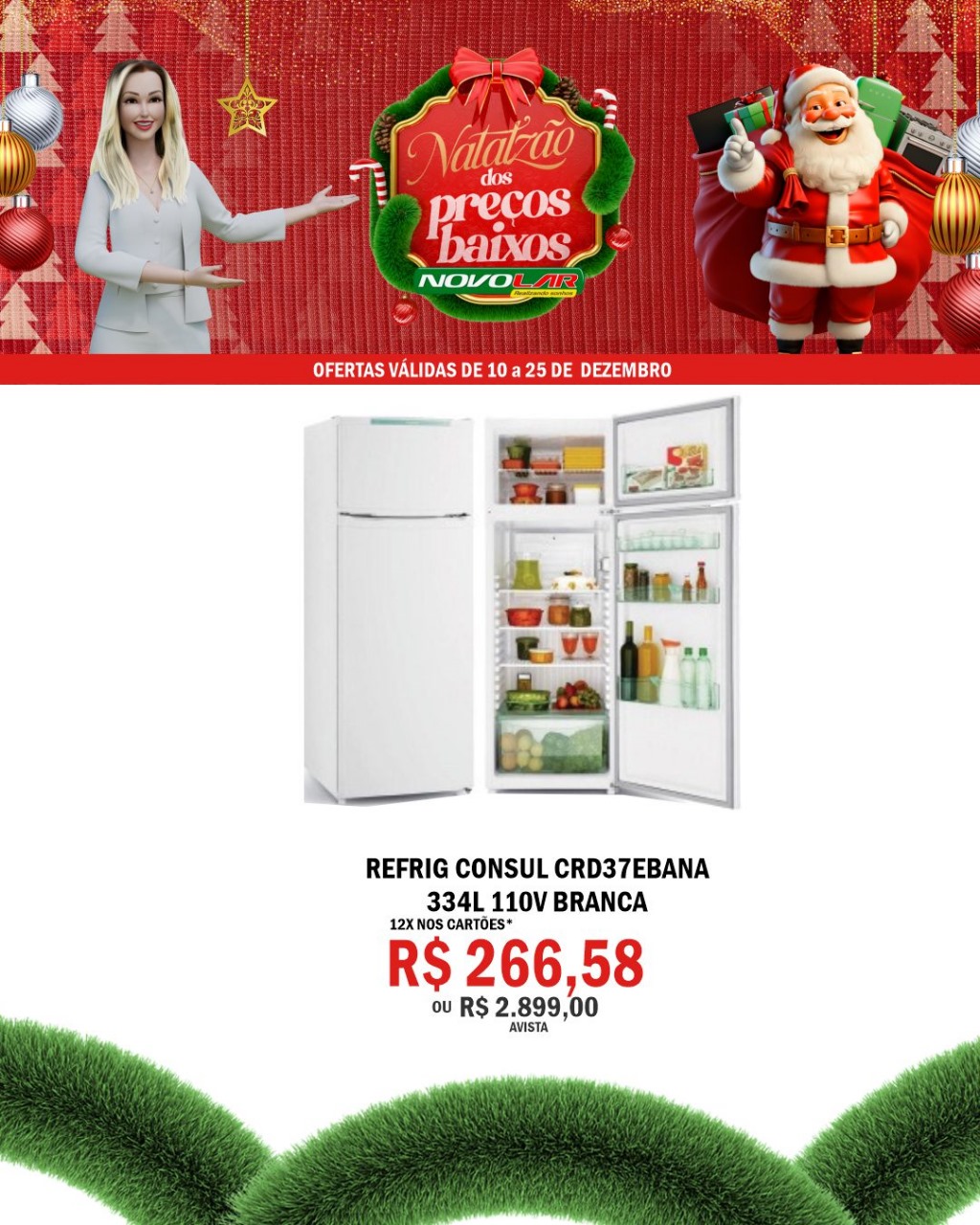 Geladeira Consul Duplex de 334 litros na cor branca, com voltagem 110V. Possui freezer espaçoso separado e gaveta de legumes transparente.